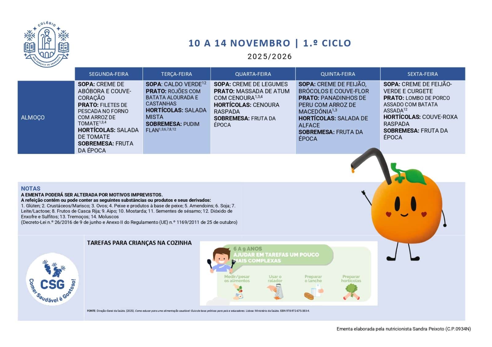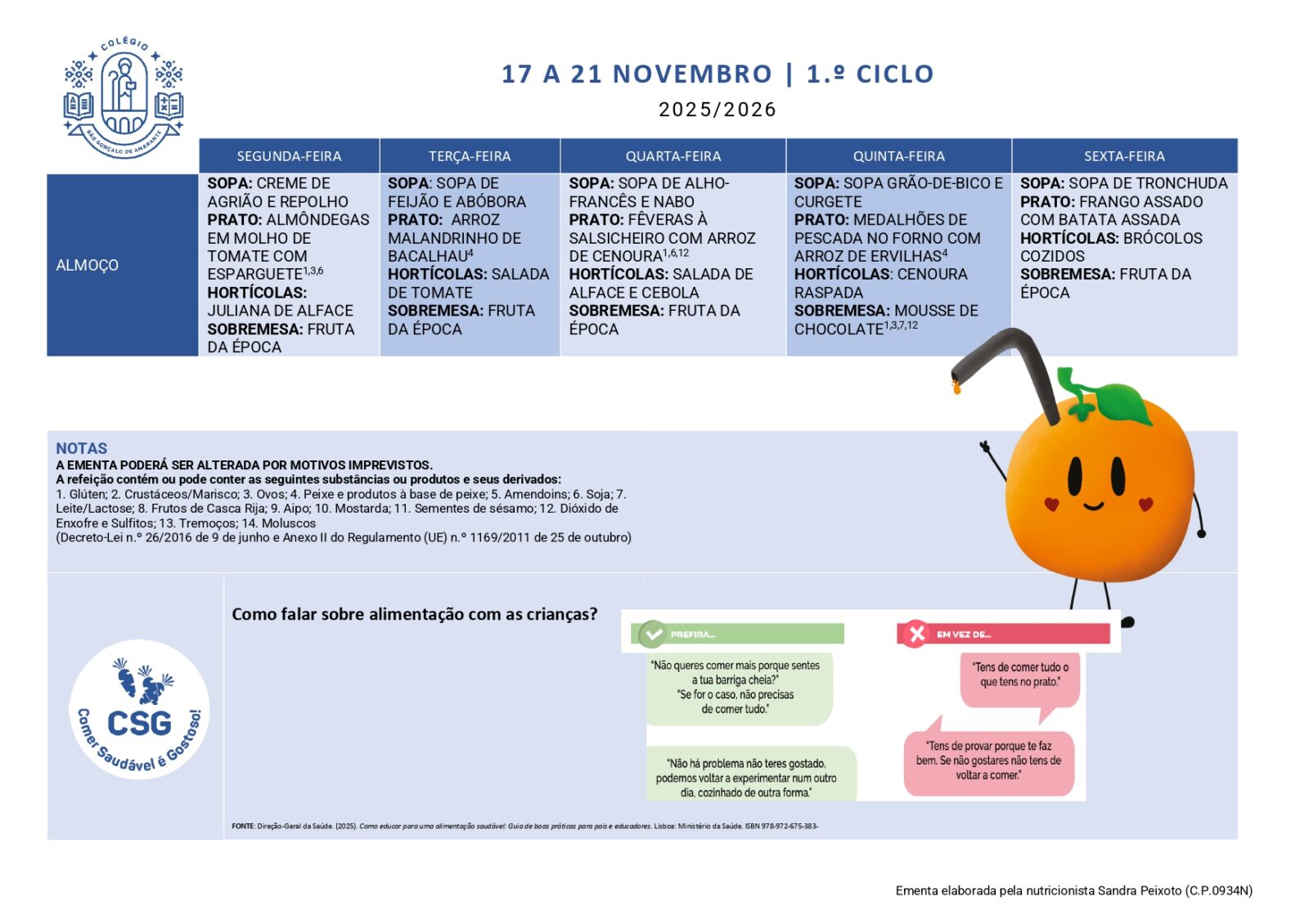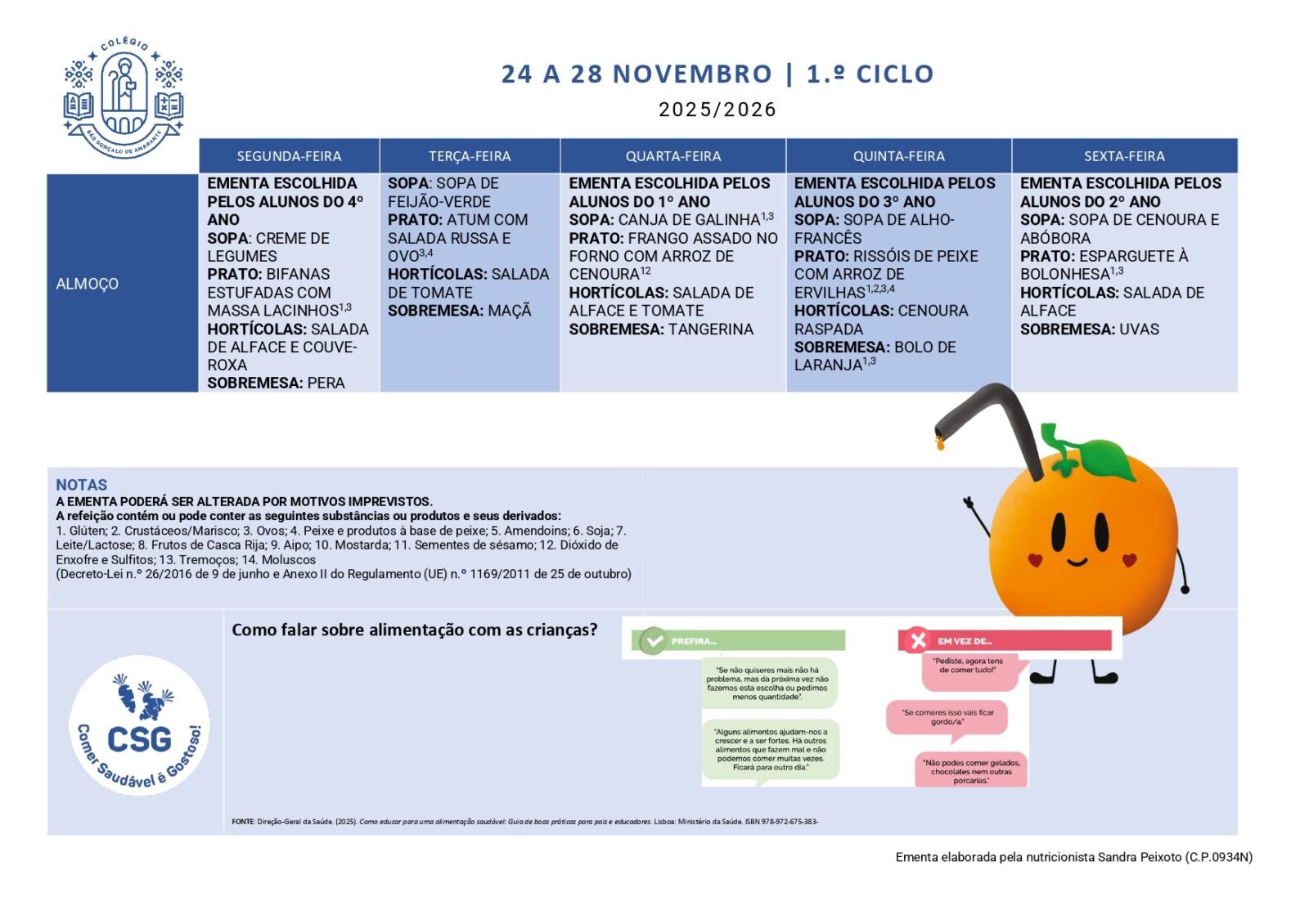 Ementas Ementa 10 - 14 nov 2025 2.º, 3.º Ciclo e Secundário 1.º Ciclo Ementa 17 - 21 nov 2025 2.º, 3.º Ciclo e Secundário 1.º Ciclo Ementa 24 - 28 nov 2025 2.º, 3.º Ciclo e Secundário 1.º Ciclo