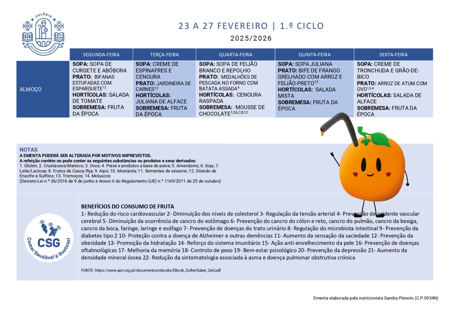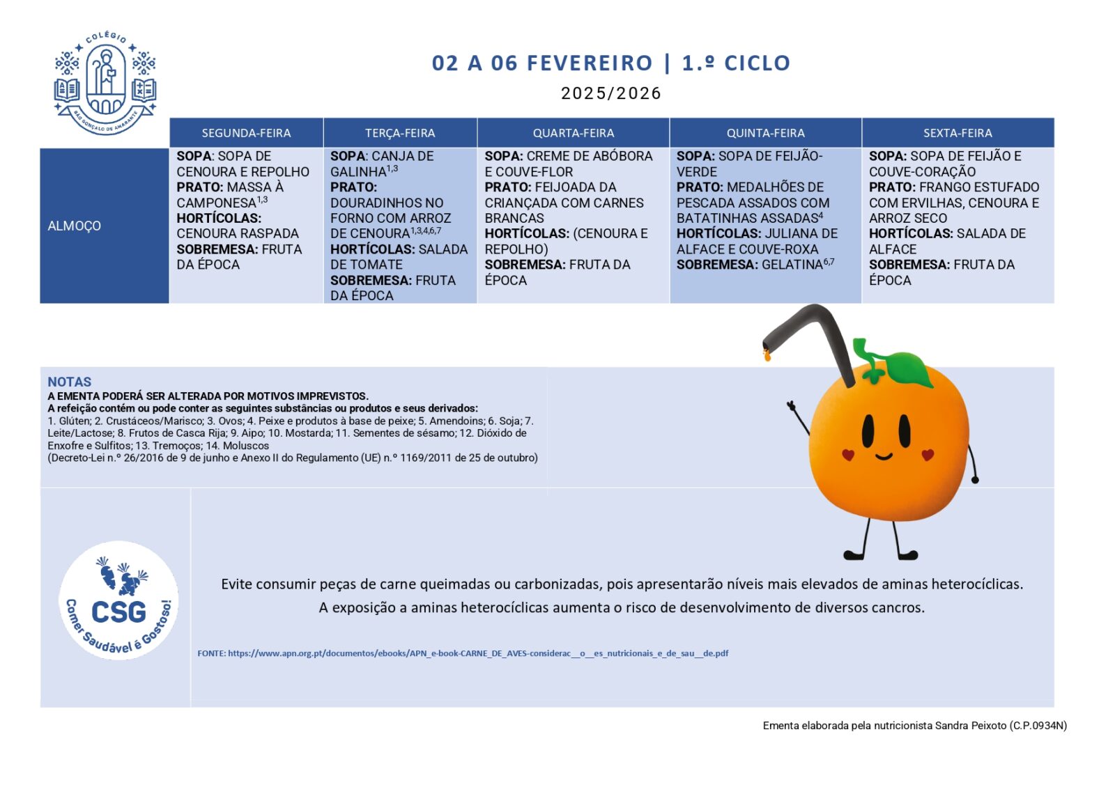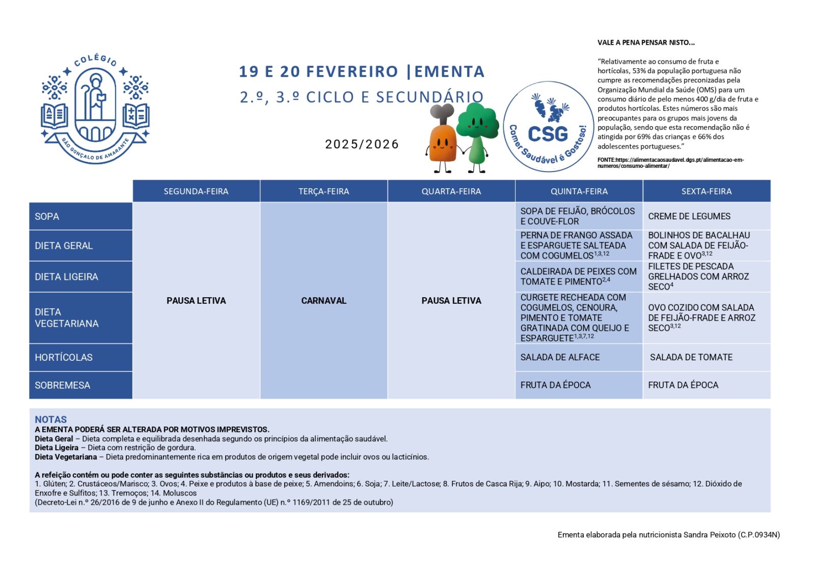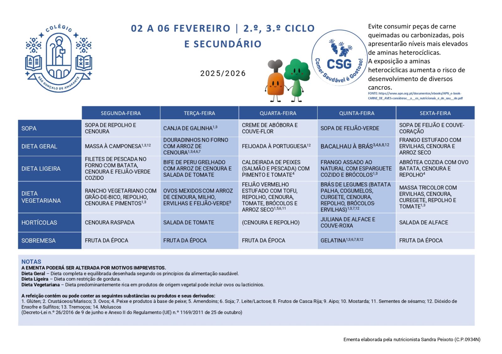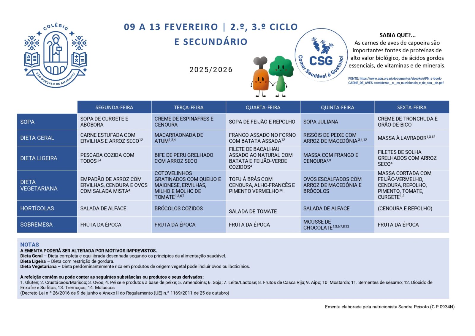Ementas Ementa 02 - 06 fev 2026 2.º, 3.º Ciclo e Secundário 1.º Ciclo Ementa 09 - 13 fev 2026 2.º, 3.º Ciclo e Secundário 1.º Ciclo Ementa 18 - 20 fev 2026 2.º, 3.º Ciclo e Secundário 1.º Ciclo Ementa 23 - 27 fev 2026 2.º, 3.º Ciclo e Secundário 1.º Ciclo