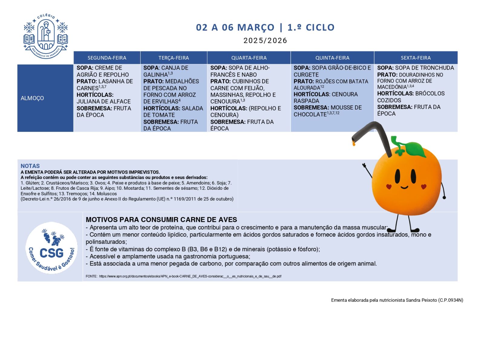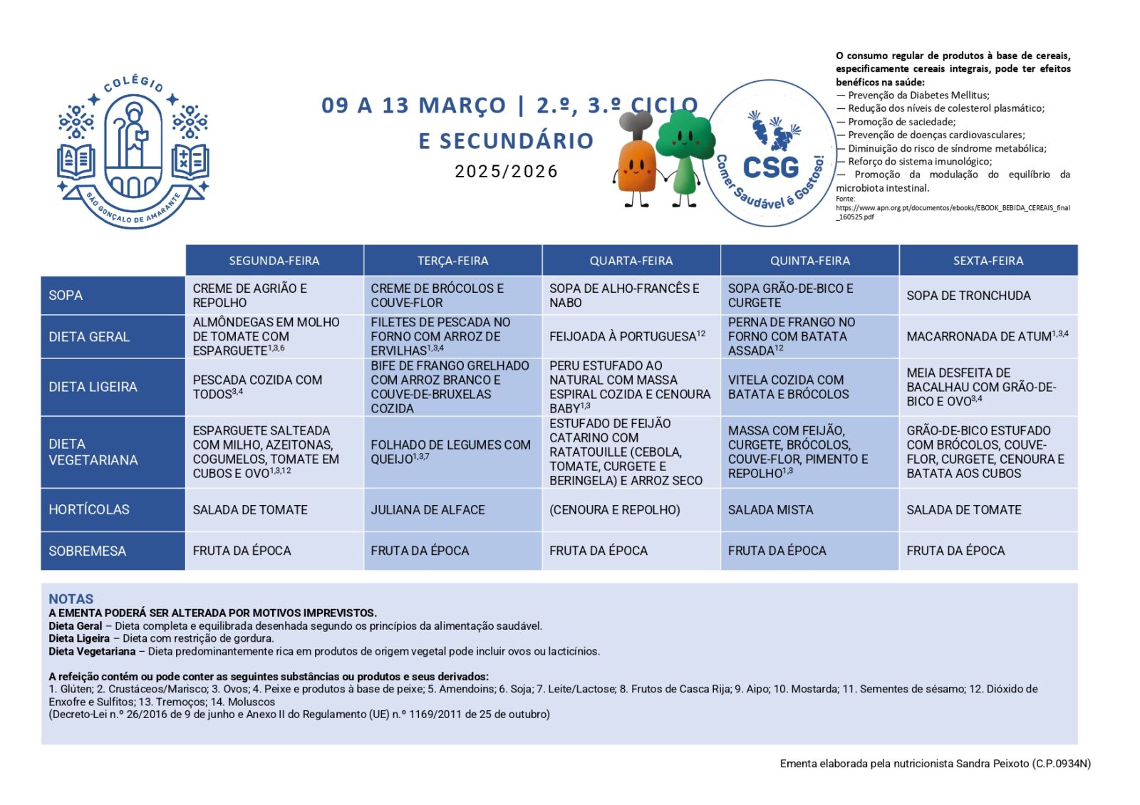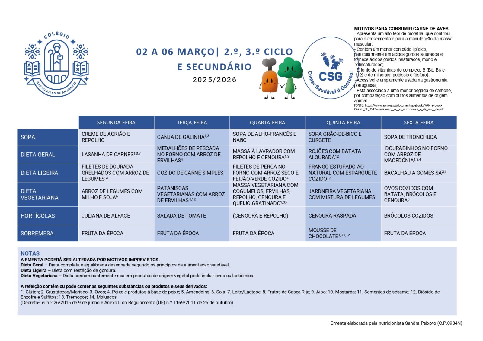 Ementas Ementa 23 - 27 fev 2026 2.º, 3.º Ciclo e Secundário 1.º Ciclo Ementa 02 - 06 MAR 2026 2.º, 3.º Ciclo e Secundário 1.º Ciclo Ementa 09 - 13 MAR 2026 2.º, 3.º Ciclo e Secundário 1.º Ciclo